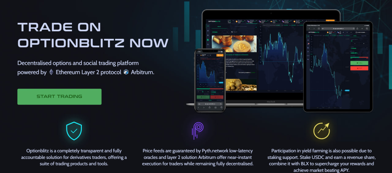OptionBlitz is a next generation exotic options trading platform. It is deployed onto the Arbitrum blockchain and delivers a rich, graphical user experience with enhanced features to satisfy the demands of traders seeking a wide range of products and markets to trade in.